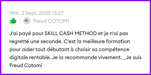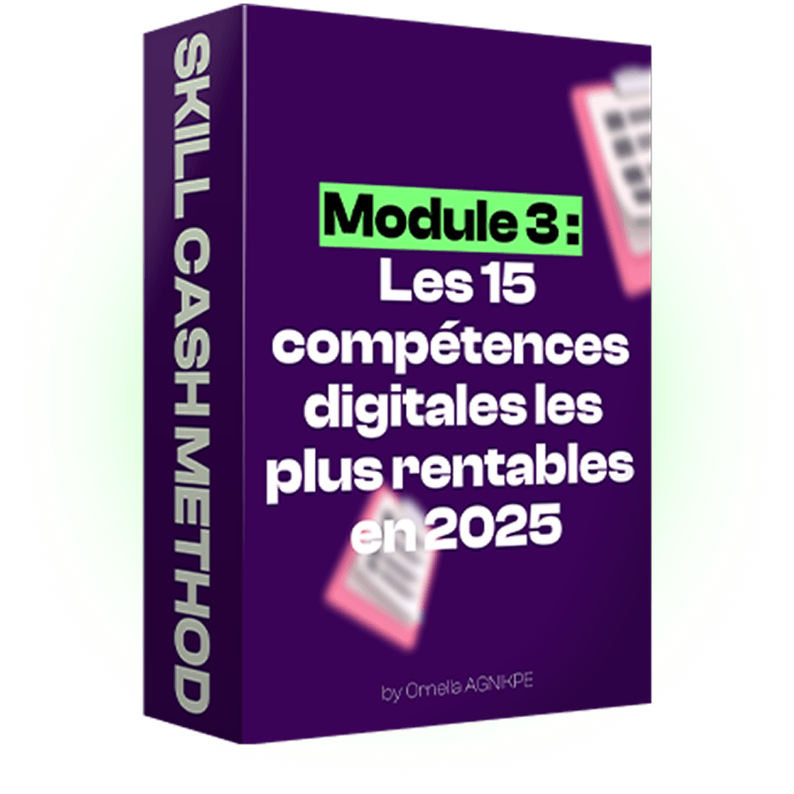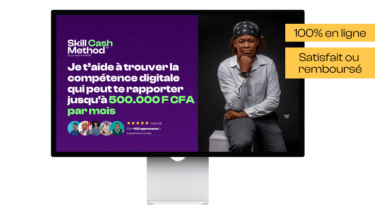 ICI, je vais t’aider à trouver la compétence digitale qui peut te rapporter jusqu'à 500.000 F CFA par mois grâce à SKILL CASH METHOD