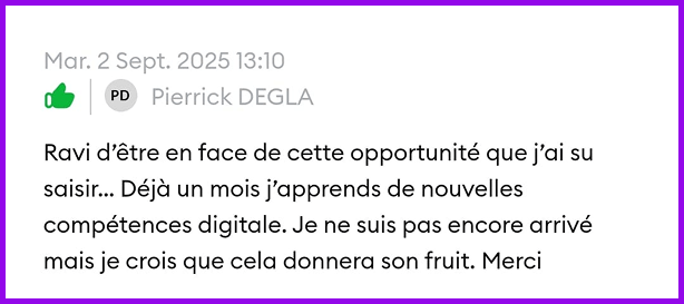 Tu rejoins une communauté motivée pour partager tes avancées, poser tes questions et ne jamais rester seul.e.