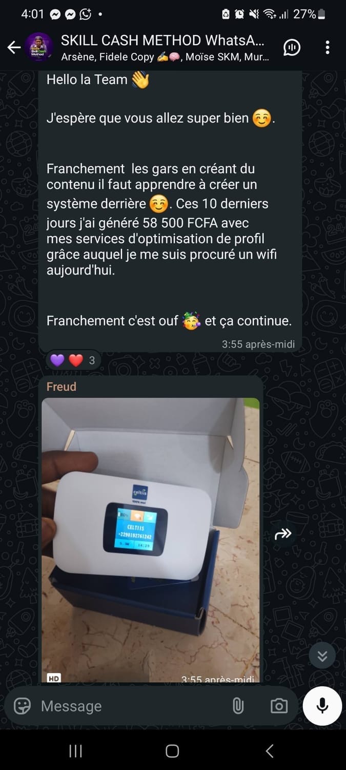 Freud a généré 58 000 FCFA en une semaine et s'est offert un pocket Wifi à seulement 18ans !