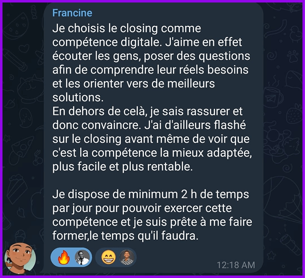 Joani a déjà généré +1000€ (650.000 F CFA) avec sa compétence.